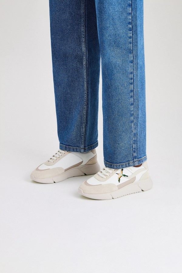 Der Genesis Stripe Bee Bird Präsentiert Die Allererste Verschmelzung Des Charakteristischen Arigato Bee Bird Und Des Legendären Genesis Vintage Runners. Die Erhabene Bienenvogel-Stickerei Ist Durch Eine Farblich Abgestimmte Lederwelle Mit Der Rückenlasche Verbunden. Textilien Werden Verantwortungsbewusst Aus Recycelten PET-Flaschen Und Meeresplastik Hergestellt, Das Von Der Seaqual-Initiative Gesammelt Wird.