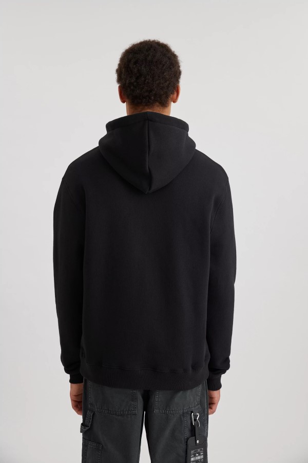 Der Focus-Logo-Hoodie Führt Ein Sauberes Erscheinungsbild Ein, Das Mit Einer Klassischen Kapuze Und Einer Kängurutasche Ausgestattet Ist. Der Hoodie Ist Aus 100 % Bio-Baumwolle Gefertigt Und Hat Ein Unverkennbares Branding Auf Der Brust. Toumane Ist 186 Cm Groß Und Trägt Größe M.