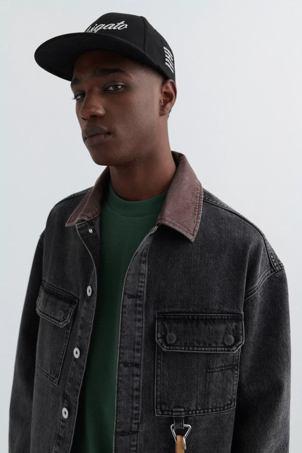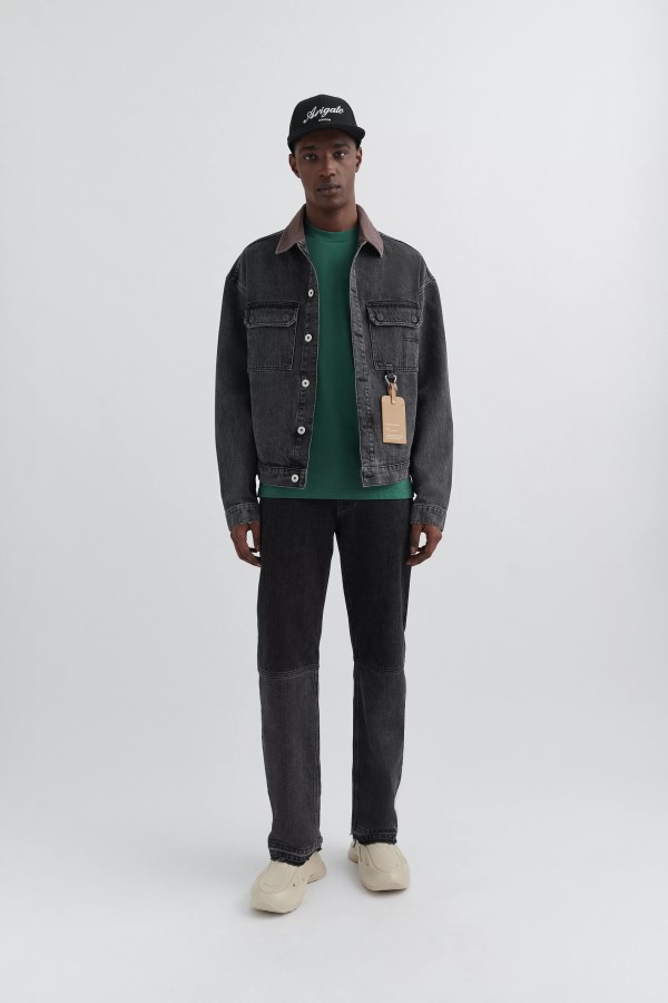 Die Aus Teilweise Recyceltem Baumwoll-Denim Geschnittene Weste Erinnert An Klassische Western-Styles. Es Ist Mit Einem Kontrastierenden Kragen Und Pattentaschen Auf Der Brust Gestaltet – Die Linke Hat Darunter Eine Schlaufe Mit Unserem Charakteristischen Gepäckanhänger. Diogo Ist 187 Cm Groß Und Trägt Größe M.