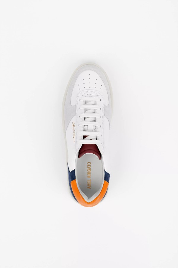 Der Orbit-Sneaker Präsentiert Einen Zukünftigen Klassiker, Der Auf Einer Benutzerdefinierten Gummisohle Mit Plattform Sitzt. Die Einsätze Sorgen Mit Einer Mischung Aus Leder Und Wildleder In Kontrastierenden Farbtönen Für Interessante Dinge, Die Mit Einem In Kursivschrift Geschriebenen Arigato-logo In Gold Von Axel Verziert Sind.