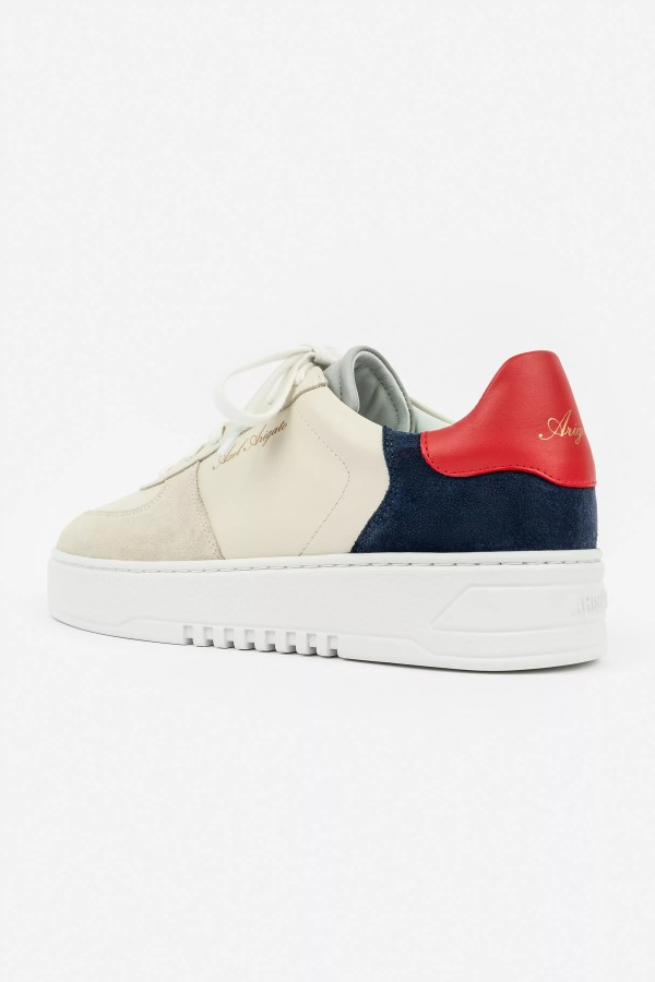 Der Orbit-Sneaker Präsentiert Einen Zukünftigen Klassiker Auf Einer Benutzerdefinierten Gummisohle Mit Plateausohle. Die Einsätze Sorgen Mit Einer Mischung Aus Leder Und Wildleder In Kontrastierenden Farbtönen Für Interessante Dinge, Die Mit Einem In Kursivschrift Geschriebenen Arigato-logo In Gold Von Axel Verziert Sind.