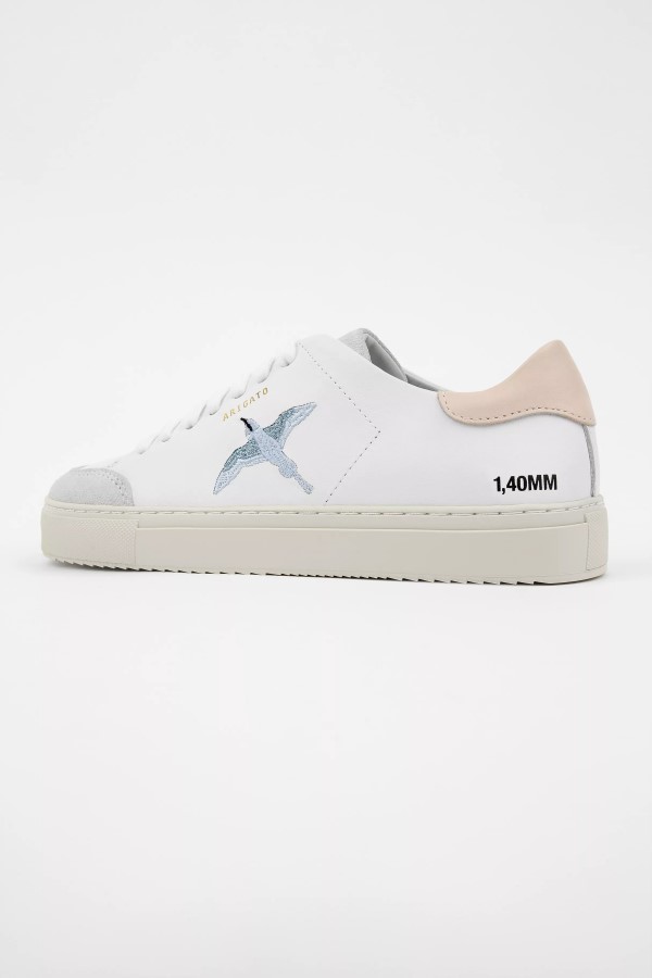 der Cleane 90 Triple Bee Bird Kombiniert Die Charakteristischen Arigato-Konzepte Der Ikonischen Bee Bird-Stickerei Und Kontrastierende Details An Rückenlasche, Zunge Und Zehen. Der Handgefertigte Low-Top-Sneaker Verfügt über Ein Obermaterial Aus Italienischem Leder, Das Auf Einer Etwas Höheren Gummi-Cup-Sohle Sitzt, Die Mit Gepolstertem Fußbett Und Fußgewölbestütze Für Maximalen Komfort Ausgestattet Ist.