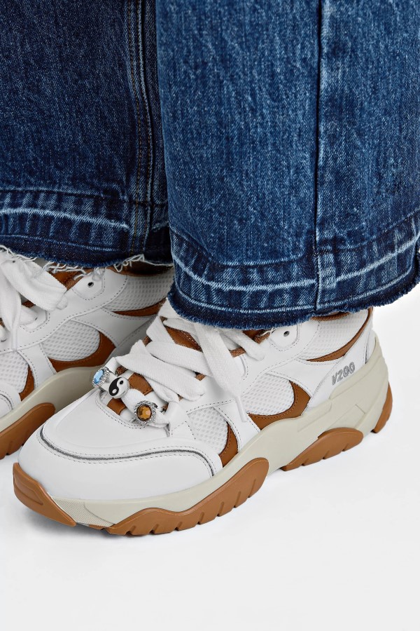 Der Catfish Sneaker Ist Von Skateschuhen Inspiriert, Die Ende Der 90er Beliebt Waren. Dieses Paar Wurde In Portugal Aus Leder- Und Mesh-Einsätzen Handgefertigt Und Ruht Auf Dicken, Maßgeschneiderten Thermoplastischen Gummisohlen. Die Schnürsenkel Sind Mit Abnehmbaren Kristallverzierungen Akzentuiert.
